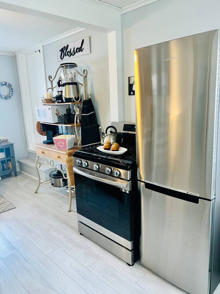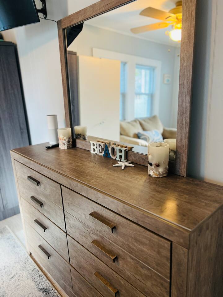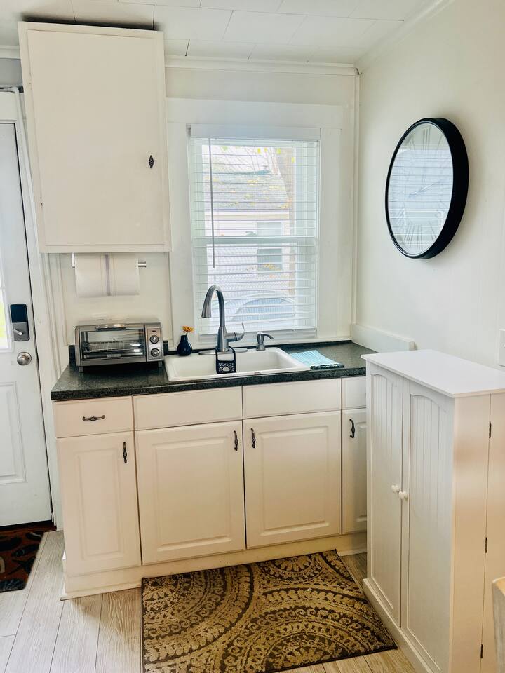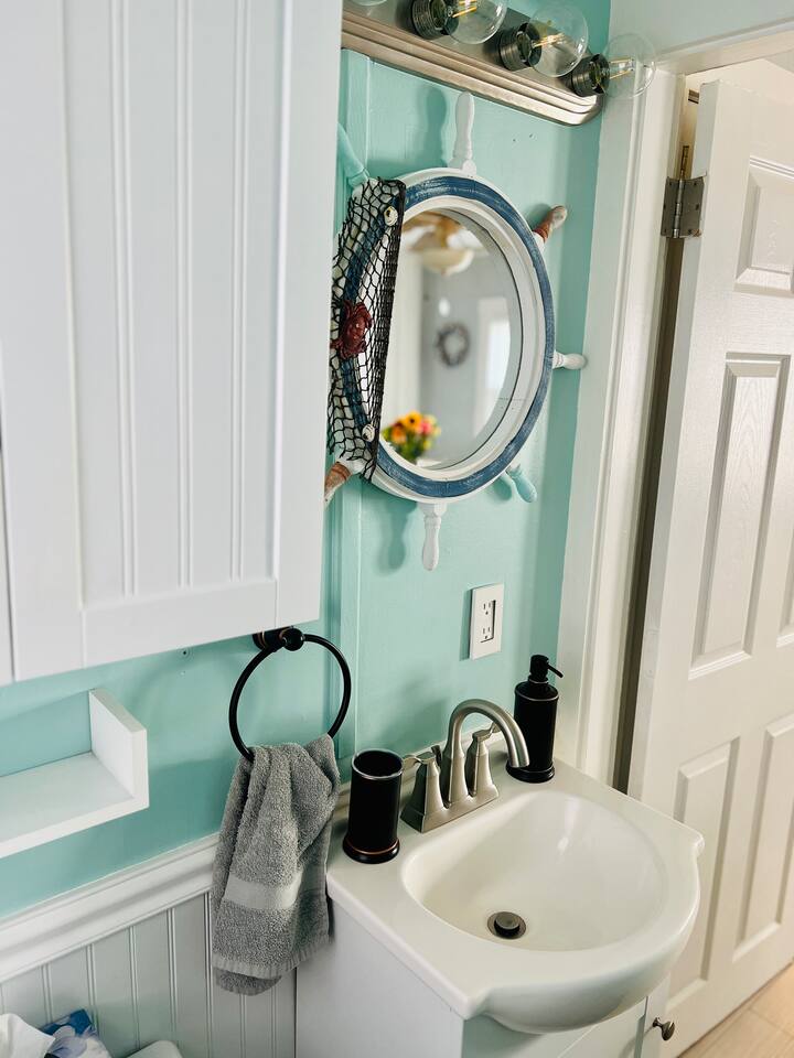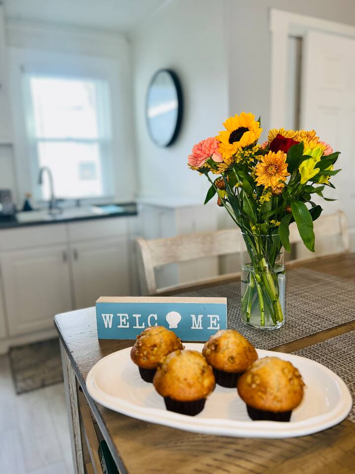 Discover our charming 1-bedroom cottage, The Ocean Breeze, a perfect retreat for a quick getaway. Whether it's a romantic escape or you're in town for a show or night out, this cozy space is an ideal choice. Comfortably accommodating up to 4 guests, the master bedroom features a queen-size bed and a full-size futon. The living room has a sectional sofa sleeper with a storage chaise, providing additional sleeping space. Experience the convenience and relaxed atmosphere of our cottage, making your stay both memorable and effortlessly comfortable