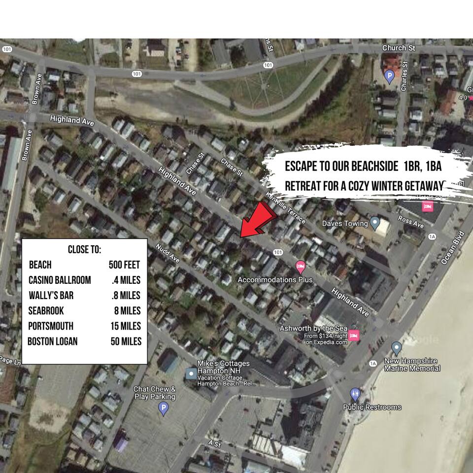 Under 2 minutes to the beach, experience the vibrant life of Hampton Beach's boardwalk—filled with fun, delicious food, and beach time. Conveniently close to bars and restaurants within walking distance. Close To: Beach 500 Feet Casino Ballroom .4 Miles Wally’s Bar .8 Miles Seabrook 8 Miles Portsmouth 15 miles Boston Logan 50 Miles